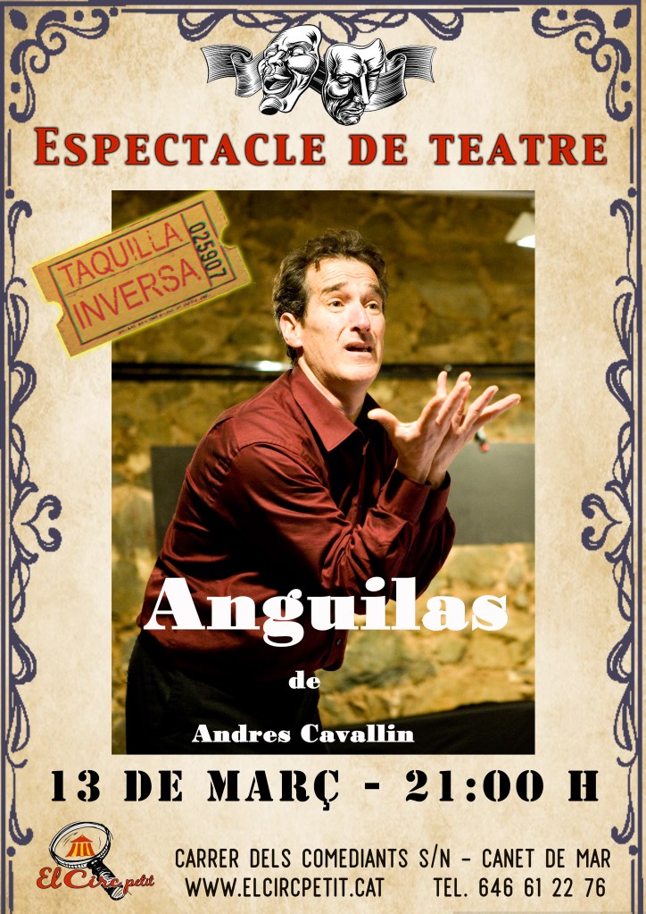 Andrés Cavallin, ens ofereix una hora d’espectacle, amb poesia, humor, nuesa; allunyat de la superficialitat. Ens aporta un lloc, un punt de trobada, un mirall on reflectir-nos. No et perdis Anguilas de l’Andrés Cavallín!