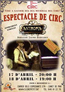 El proper dia 18 d’abril es el dia mundial del circ i per aquest motiu El Circ Petit presentarà a la seva carpa de circ el seu nou espectacle de circ / teatre “Antropia” els dies 17 i 18 d’abril.